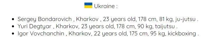 Sometimes translated as ‘Mr. Strong Man’, this event between fighters from two former Soviet States was held in Minsk in January 1996. Staged by apparent ‘Sensei’ Bumata Matatatsu and with several qualifying tournaments held first to decide who the Belarusian representatives would be, this was held under the ‘standard’—for lack of a better term—no holds barred rules: no eye-gouging, no attacks to the inside of the mouth, as well as no biting. No cages or ropes would contain the combatants for this tournament, and no rounds or time limits were to imposed on the fighters, amongst them seven Belarusians and three Ukrainians.